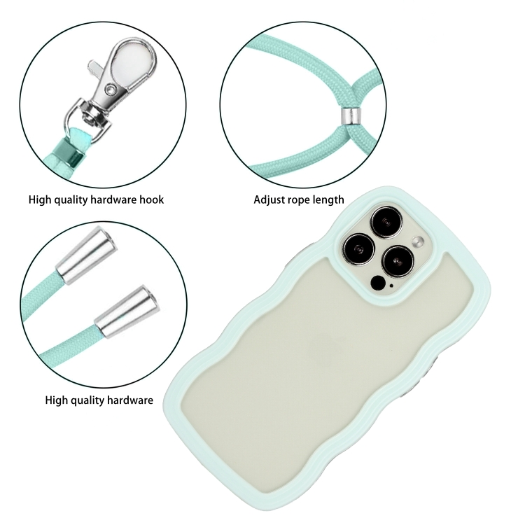 Funda para iPhone 15 Pro Max Lanyard Candy Color Wave TPU Clear PC (Verde)