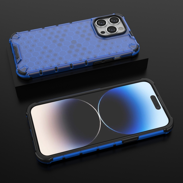 Funda para iPhone 15 Pro Max Lanyard Honeycomb Phone Case (Azul)
