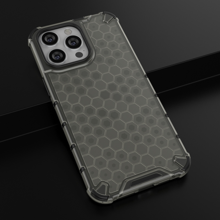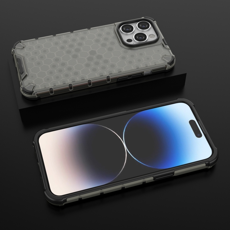 Funda para iPhone 15 Pro Max Lanyard Honeycomb Phone Case Función Protección (Negro)