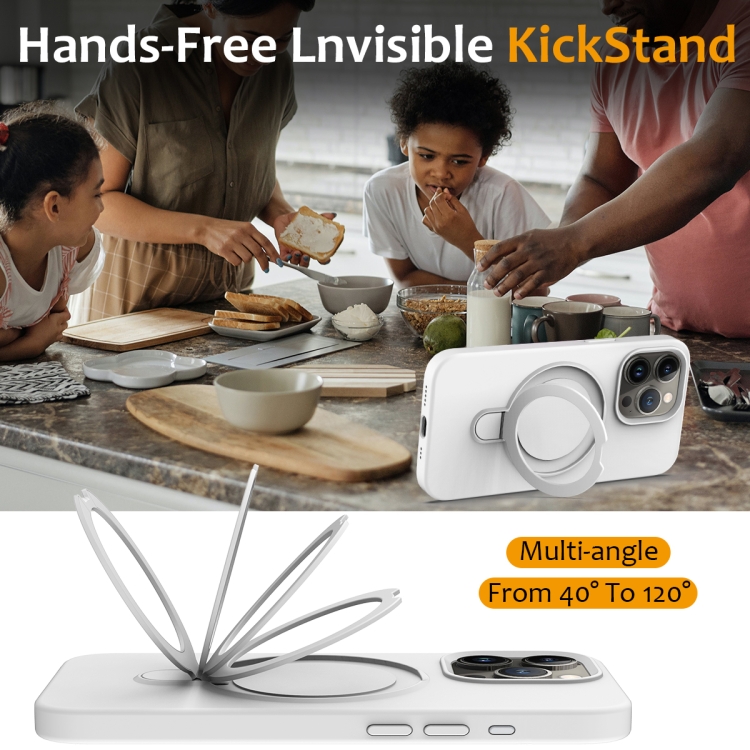 Funda para Teléfono iPhone 15 Pro Max Silicona Líquida Magnética con Soporte para Anillo (Blanco)