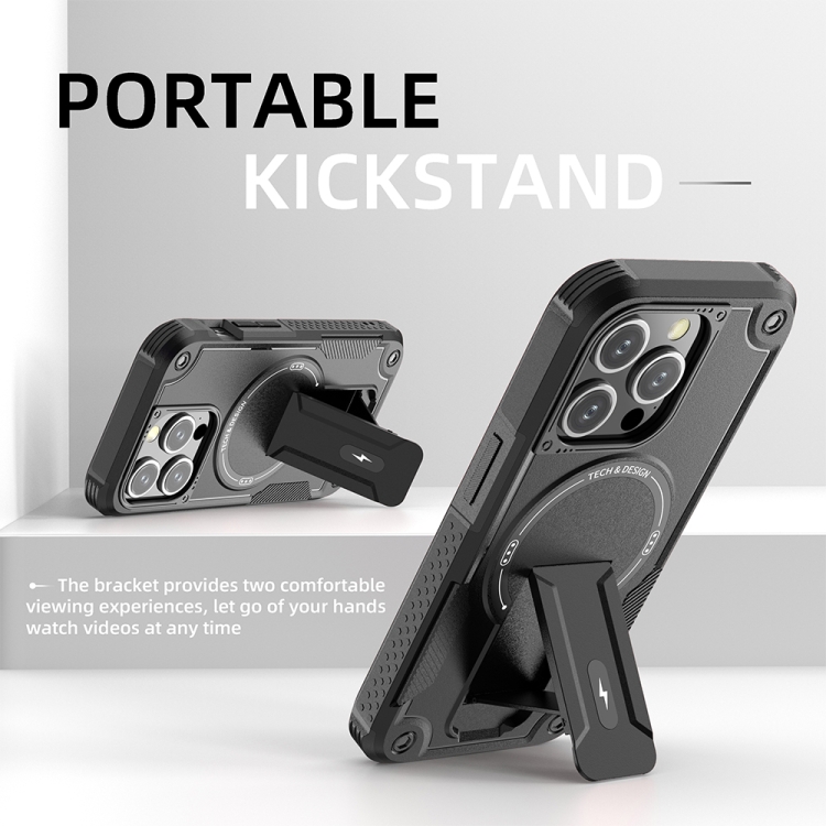 Funda para Teléfono iPhone 15 Pro Max Magsafe Holder Armor PC Hybrid TPU (Negro)