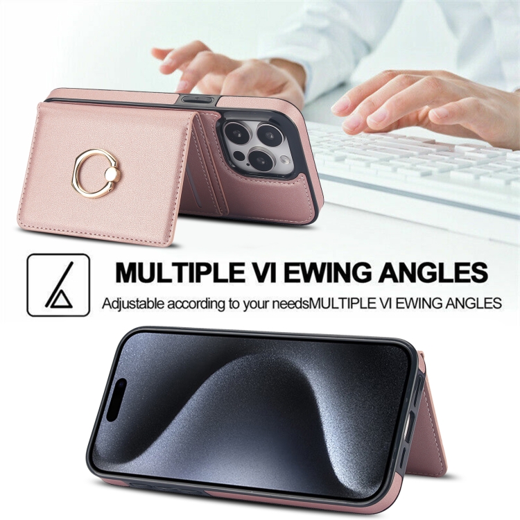 Funda para Teléfono iPhone 15 Pro Max Rfid con Soporte para Anillo y Tarjeta Antirrobo (Oro Rosa)