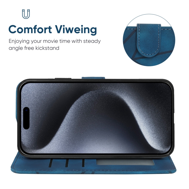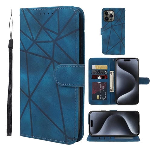 Funda de Cuero para Teléfono iPhone 15 Pro Max Skin Feel Líneas Geométricas (Azul)