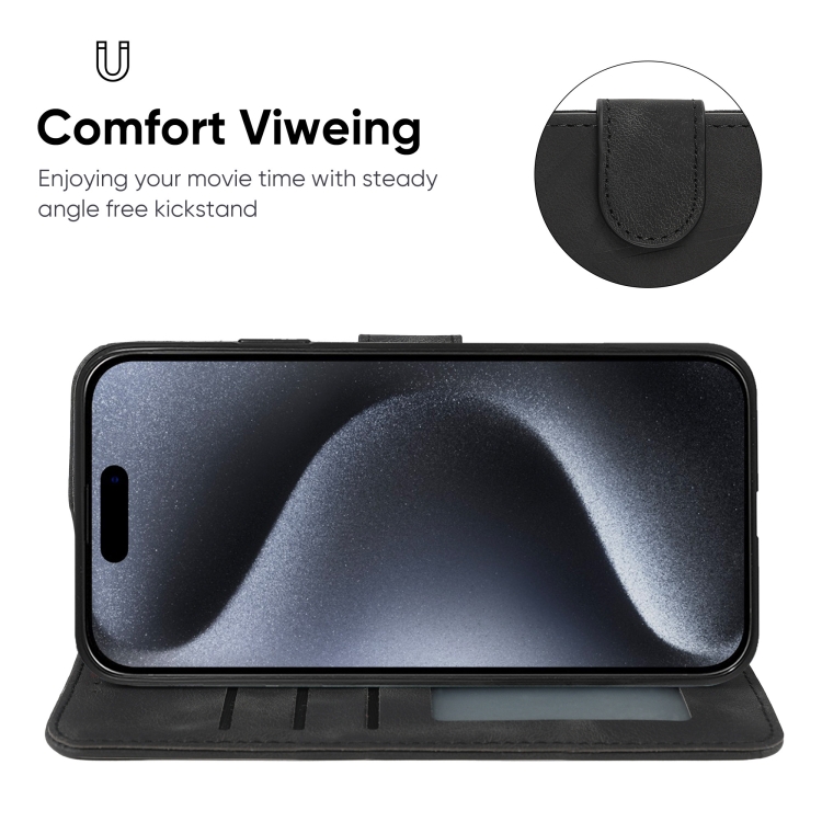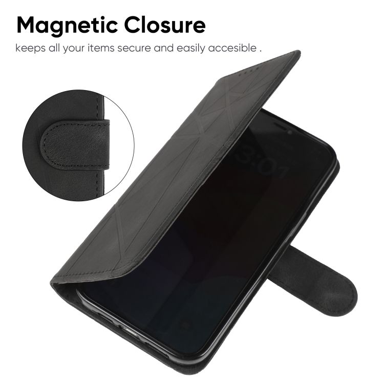 Funda para Teléfono iPhone 15 Pro Max Skin Feel de Cuero con Líneas Geométricas (Negro)