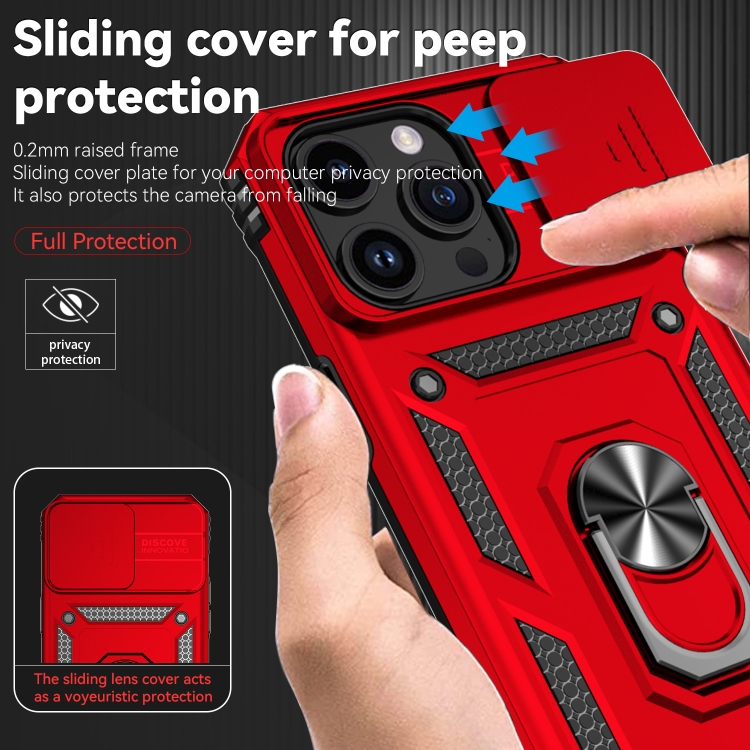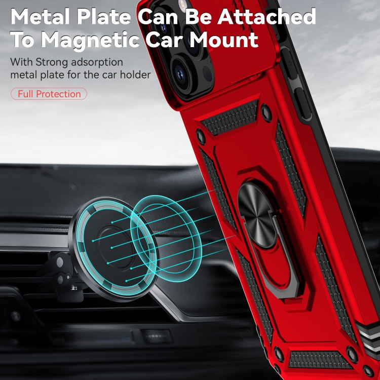 Funda para iPhone 15 Pro Max Sliding Camshield Holder (Rojo)