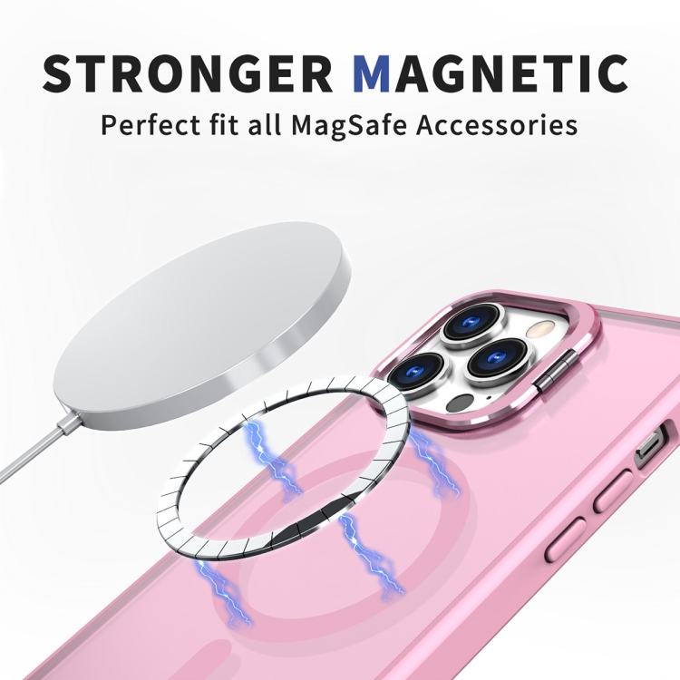 Soporte de Cámara Invisible de Metal Funda Magnética para iPhone 15 Pro Max Magsafe (Rosa)