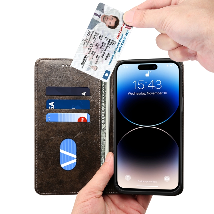 Funda para teléfono Suteni iPhone 15 Pro Max Cuero Textura de Becerro Barroca con Hebilla (Negro)