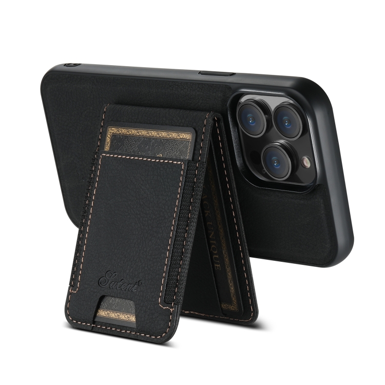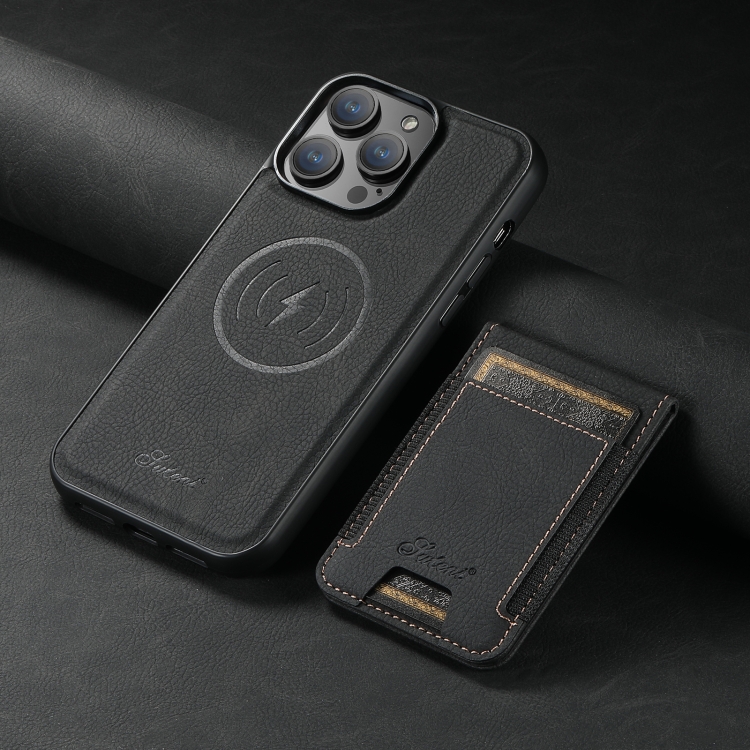 Funda para Teléfono Suteni H17 para iPhone 15 Pro Max con Billetera Desmontable Magsafe de Cuero Textura Litchi (Negro)