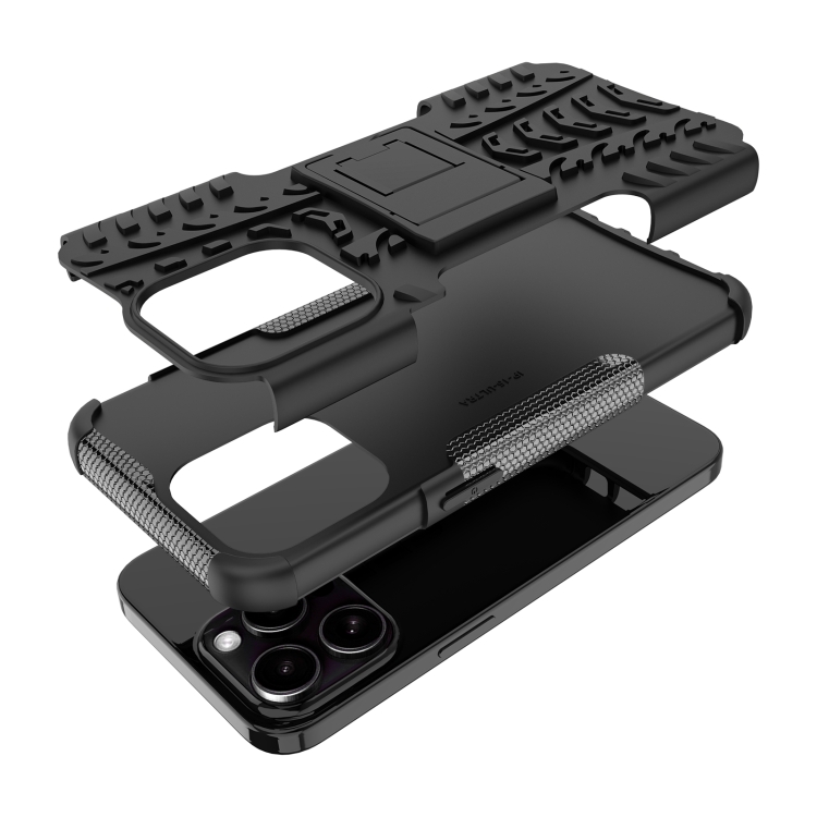 Funda para Teléfono iPhone 15 Pro Max Tire Texture TPU + PC con Soporte (Negro)