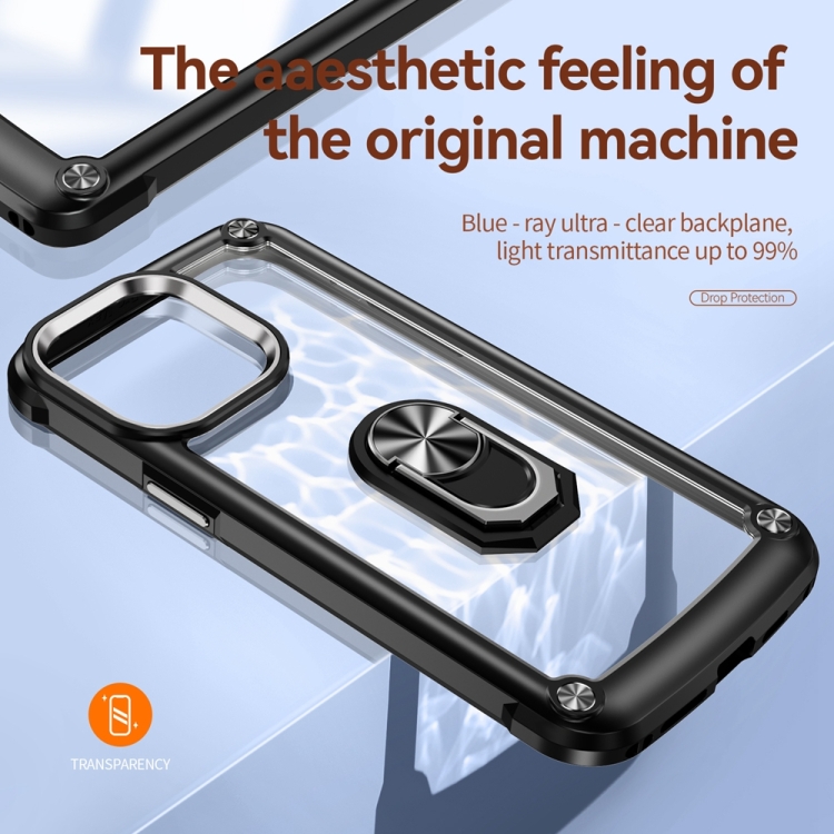 Estuche para Teléfono iPhone 15 Pro Max TPU + PC con Protección de Lente y Soporte para Anillo (Negro)
