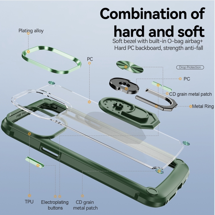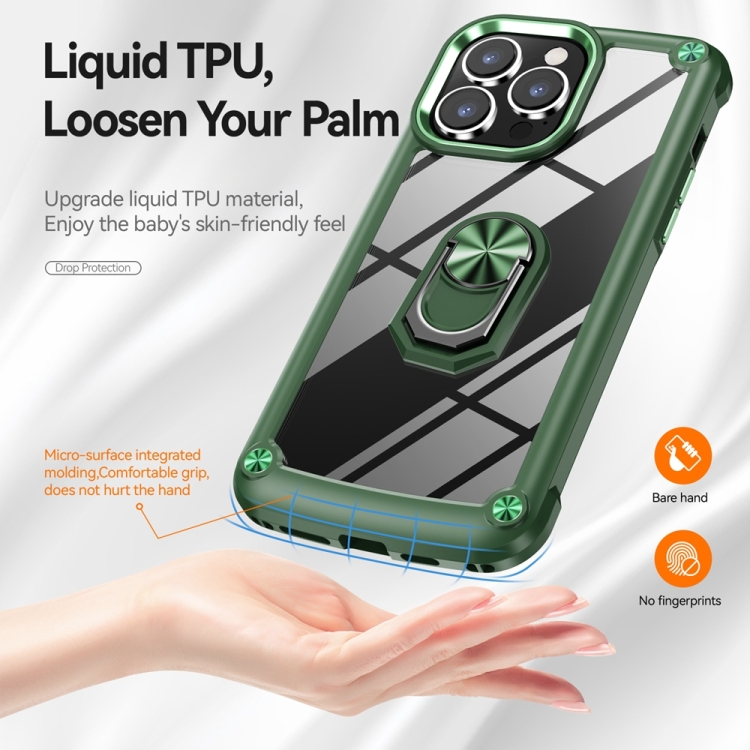 Estuche para Teléfono iPhone 15 Pro Max TPU + PC con Protección de Lente y Soporte para Anillo (Verde)