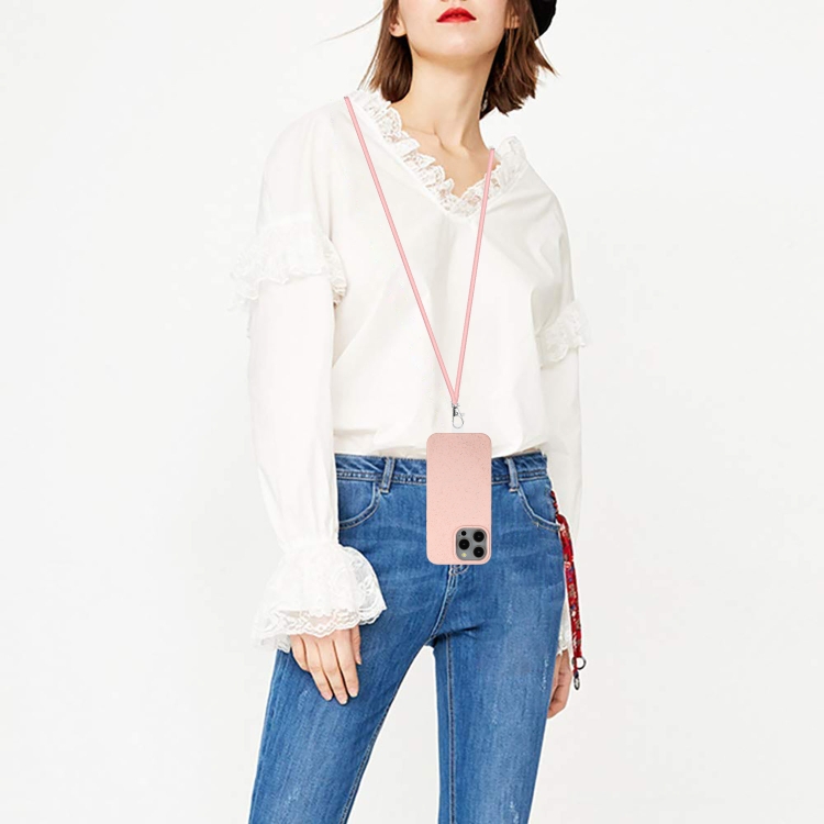 Funda para Teléfono iPhone 15 Pro Max Wheat Magsafe Material de Paja Magnético + TPU con Cordón (Rosa)
