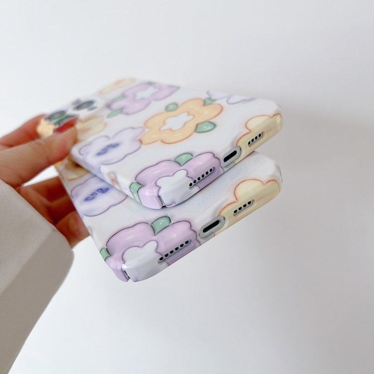 Funda para iPhone 15 Pro PC Phone Case con Flores Amarillas y Moradas