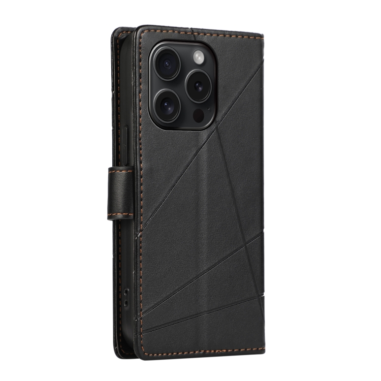 Funda para Teléfono iPhone 15 Pro PU con Línea en Relieve Textura Cuero Genuino (Negro)