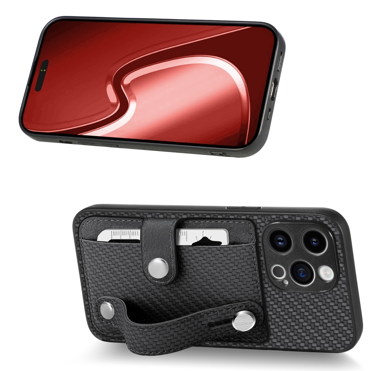 Funda Trasera para iPhone 15 Pro con Pulsera, Soporte para Tarjeta, Billetera y Cuchillo para Herramientas (Negro)