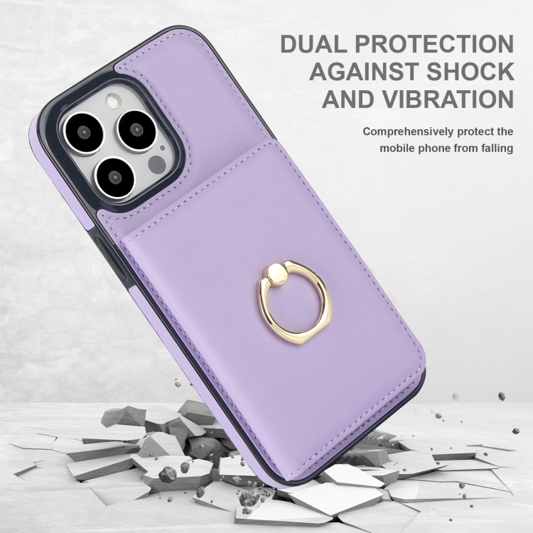 Estuche para Teléfono iPhone 15 Pro Rfid Tarjeta Antirrobo con Soporte para Anillo (Púrpura)