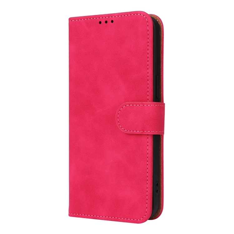 Funda para iPhone 15 Pro Skin Feel Magnetic Flip de Cuero (Rosa Roja)