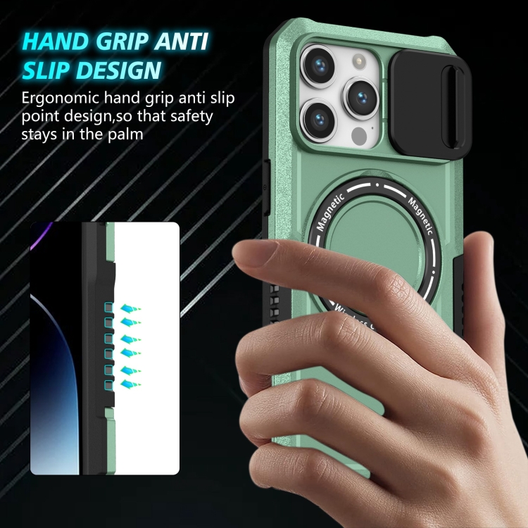 Funda para teléfono iPhone 15 Pro Sliding Camshield Magsafe Holder TPU Hybrid (Azul Claro)