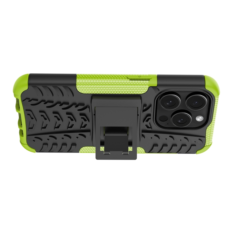 Funda para Teléfono iPhone 15 Pro Tire Texture TPU + PC con Soporte (Verde)