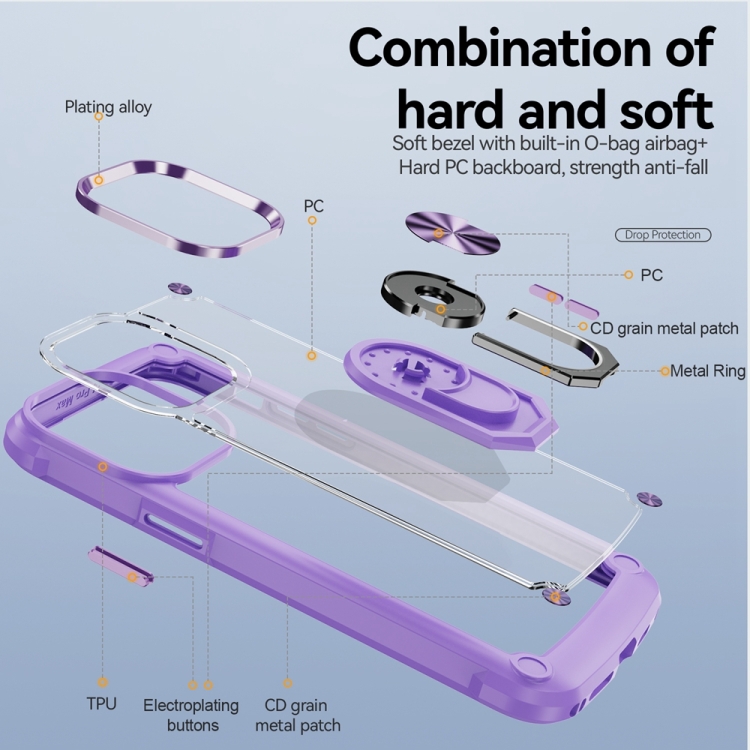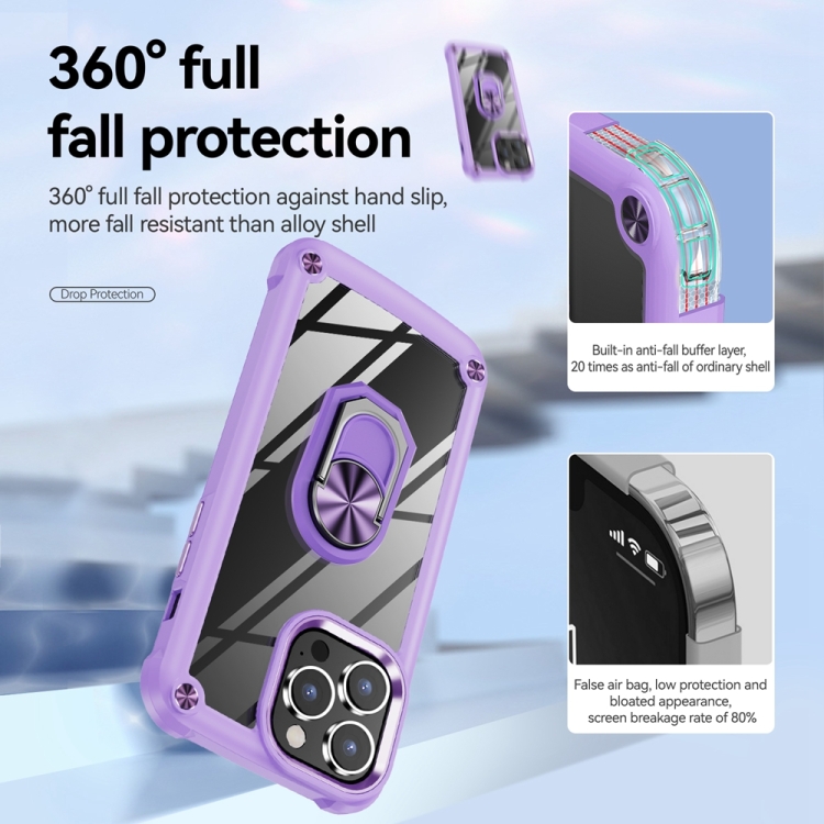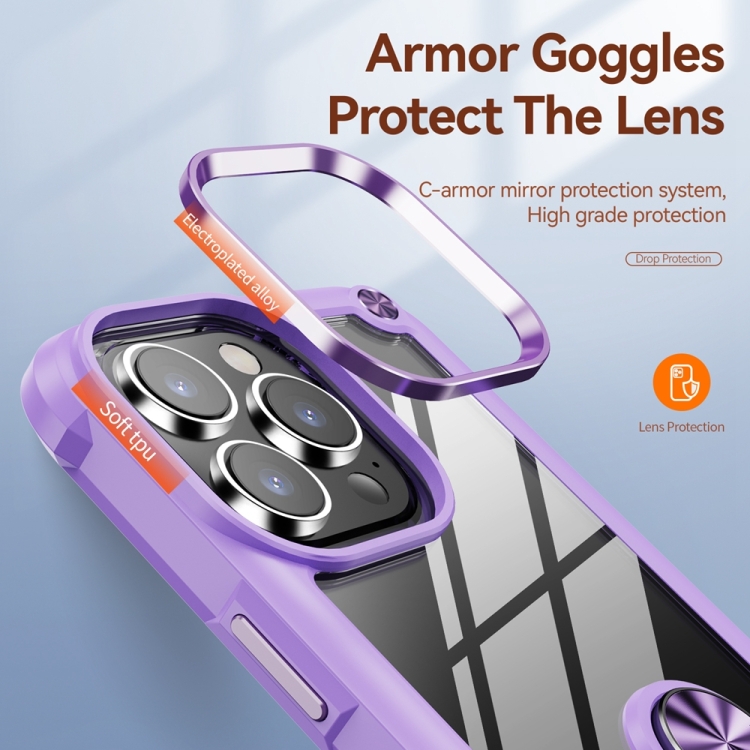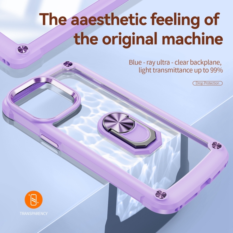 Estuche para Teléfono iPhone 15 Pro TPU + PC con Protección de Lente y Soporte para Anillo (Púrpura)