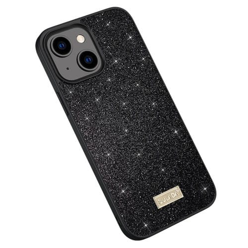 Funda para iPhone 15 Sulada Glittery PC + TPU + Cuero hecha a mano (Negro)