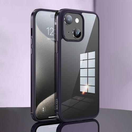 Marco de Metal para iPhone 15 Sulada + Nano Glass + Funda TPU (Púrpura Oscuro)