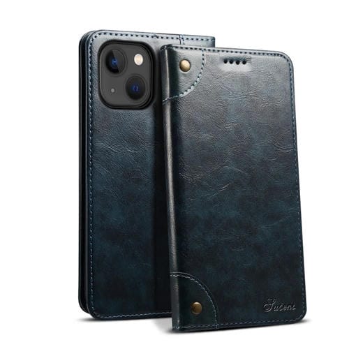 Funda para Teléfono Suteni iPhone 15 Cuero con Billetera Textura Becerro Barroca (Azul)