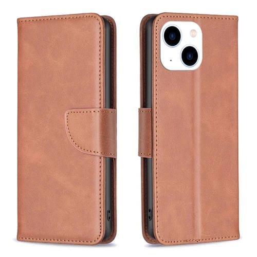 Funda para iPhone 15 Piel de Cordero Flip Cuero Color Puro (Marrón)