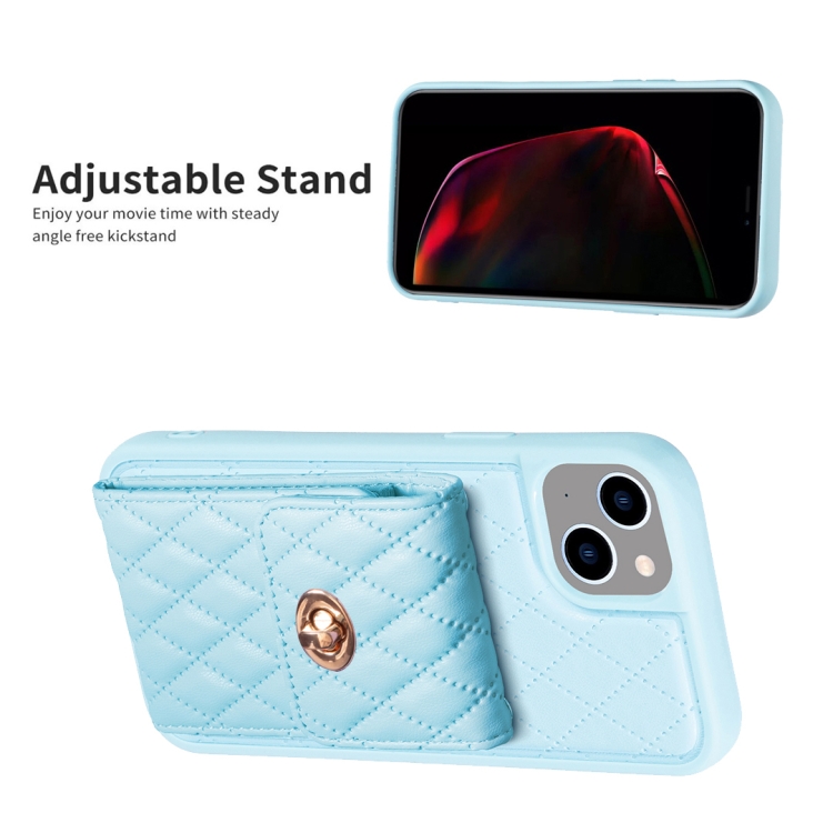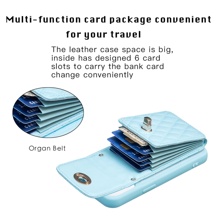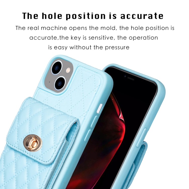 Funda Vertical Wallet Rhombic de Cuero para iPhone 15 (Azul)