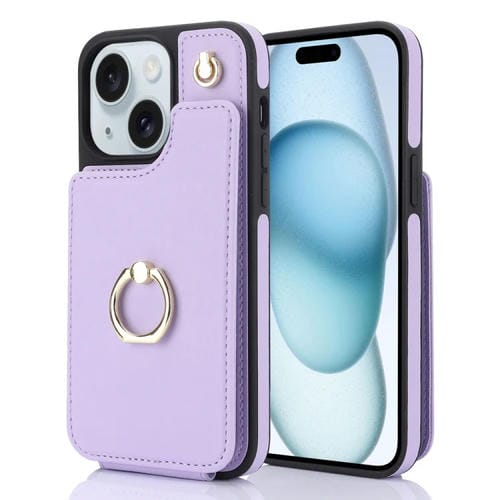 Funda para Teléfono iPhone 15 Ym005 Skin Feel Card Bag con Cordón Largo (Púrpura Claro)
