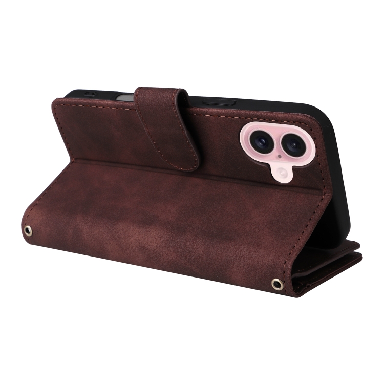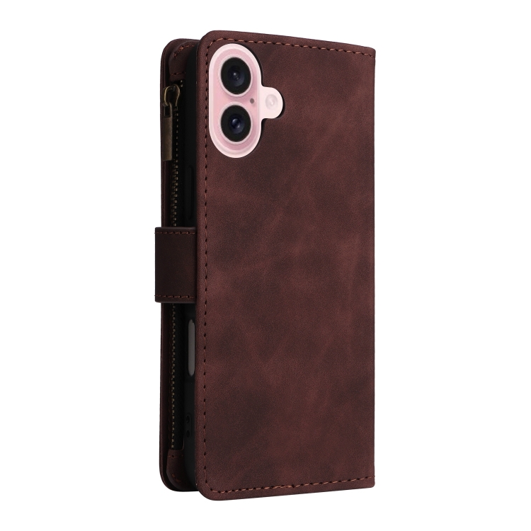 Funda para Teléfono iPhone 16 Cuero con Cremallera y Ranura para Tarjetas Cruzadas (Café)