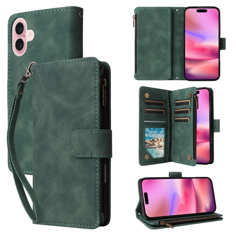 Funda para Teléfono iPhone 16 Cuero con Cremallera y Ranura para Tarjetas Cruzadas (Verde)