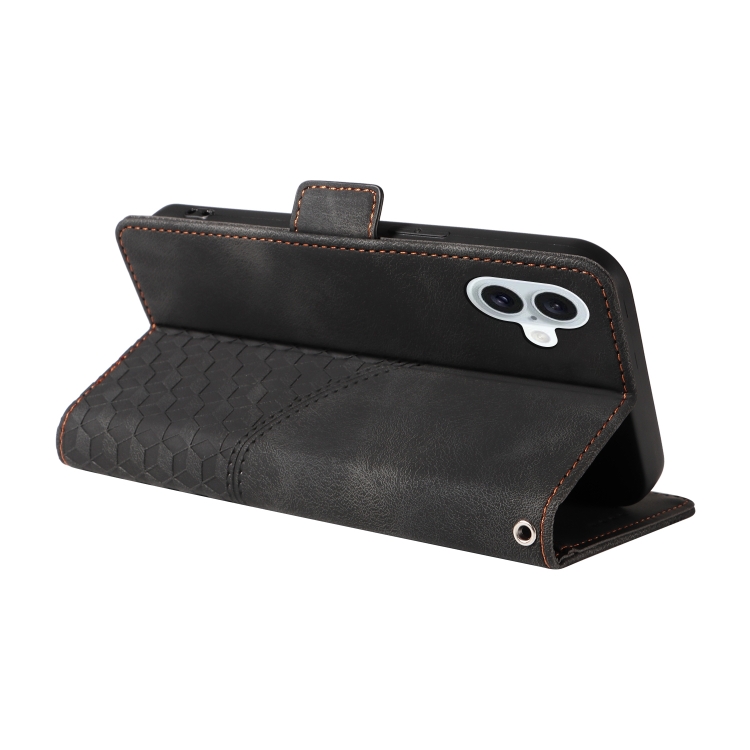 Funda para Teléfono iPhone 16 Cuero Estrellado Rombo En Relieve (Negro)