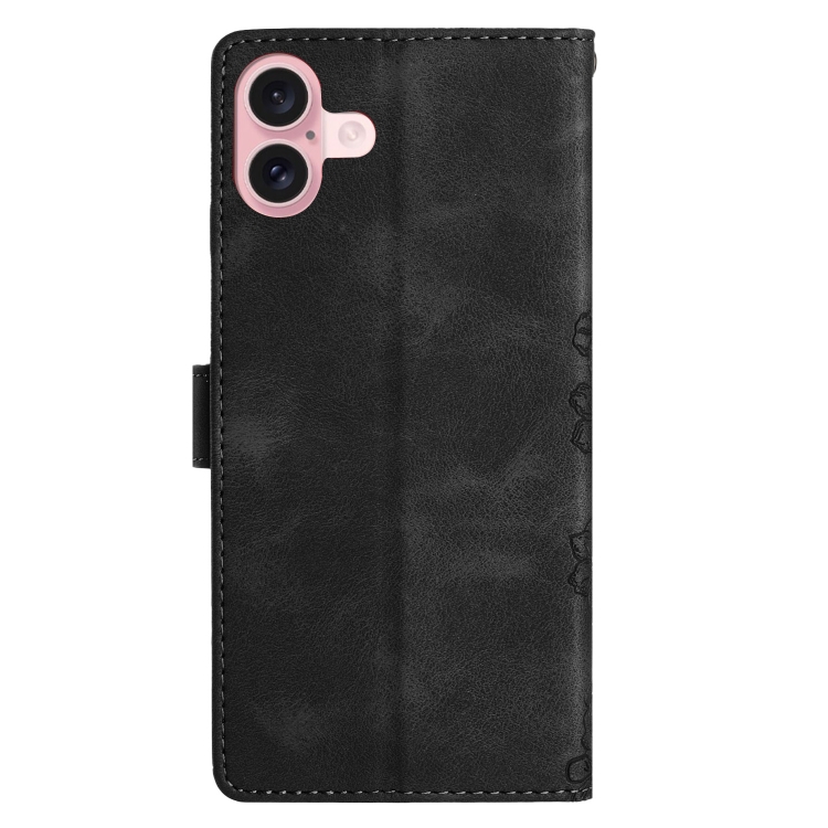 Funda para teléfono iPhone 16 Plus Cherry Blossom Butterfly Skin Feel Pu en Relieve (Negro)