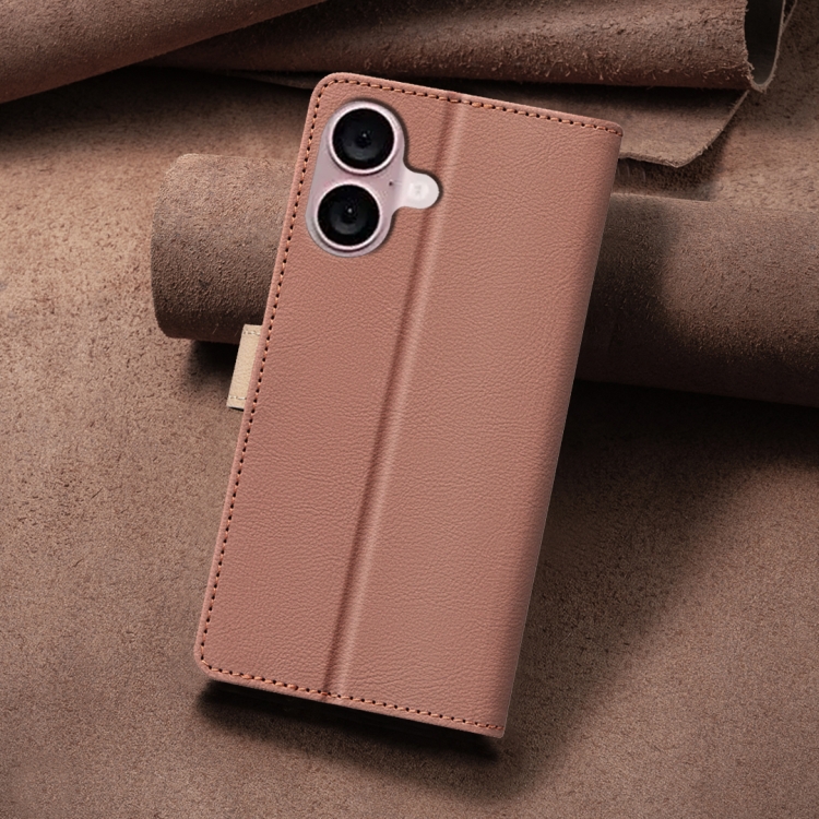 Estuche para Teléfono iPhone 16 Plus Cuero Antirrobo RFID (Marrón)