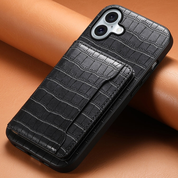 Funda para Teléfono iPhone 16 Plus Diseño Bolsa de Tarjeta Textura Cocodrilo (Negro)