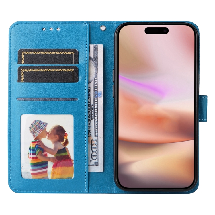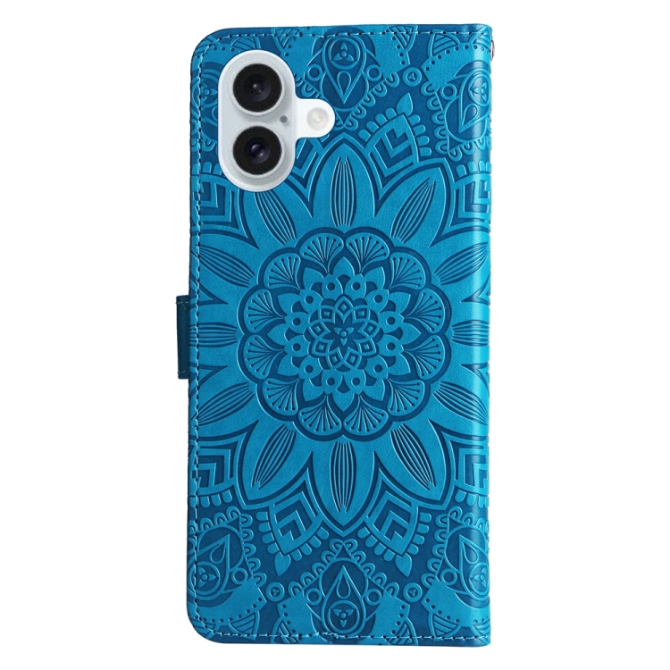 Funda para Teléfono iPhone 16 Plus Cuero Girasol en Relieve (Azul)