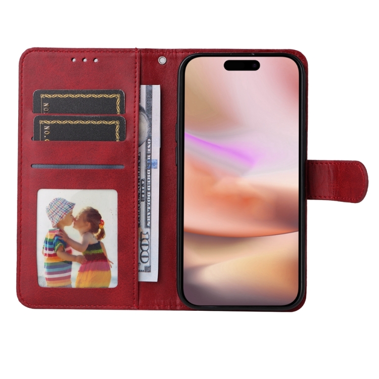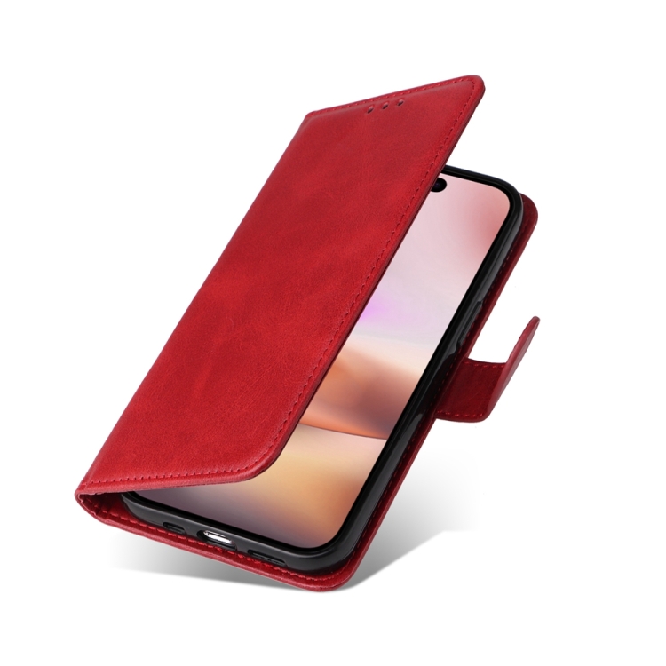 Funda para Teléfono iPhone 16 Plus Cuero con Tapa Textura de Becerro (Rojo)