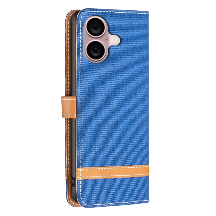 Funda para Teléfono iPhone 16 Plus Cuero Textura Vaquera Bloques de Color (Azul Real)