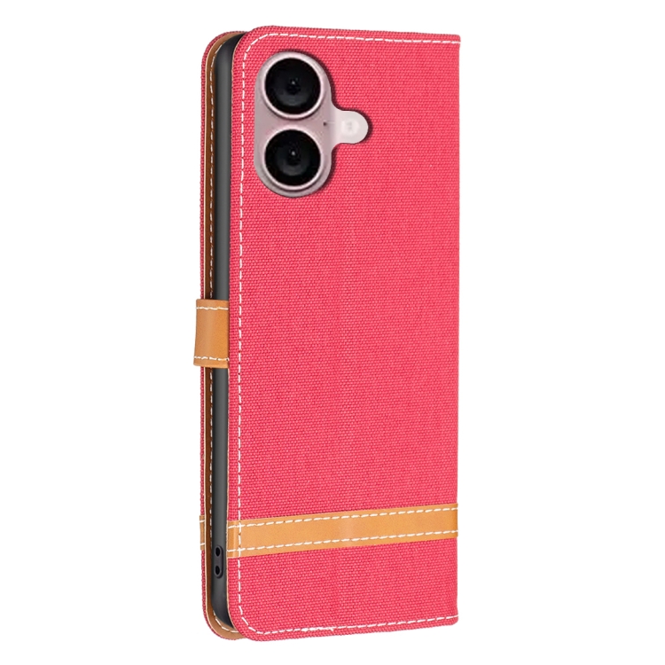 Funda para Teléfono iPhone 16 Plus Cuero Textura Vaquera Bloques de Color (Rojo)