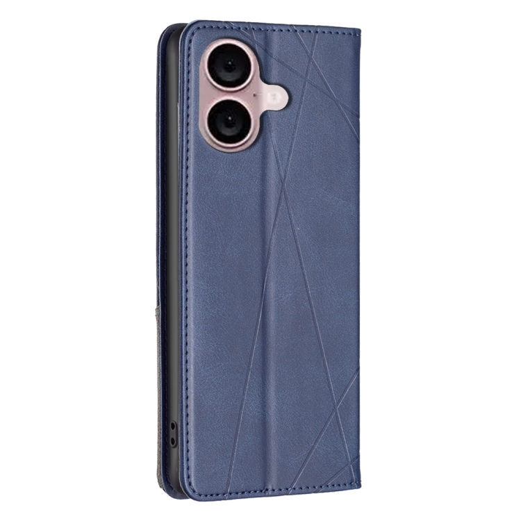 Funda para Teléfono iPhone 16 Plus Cuero Magnético Textura Rombo (Azul)