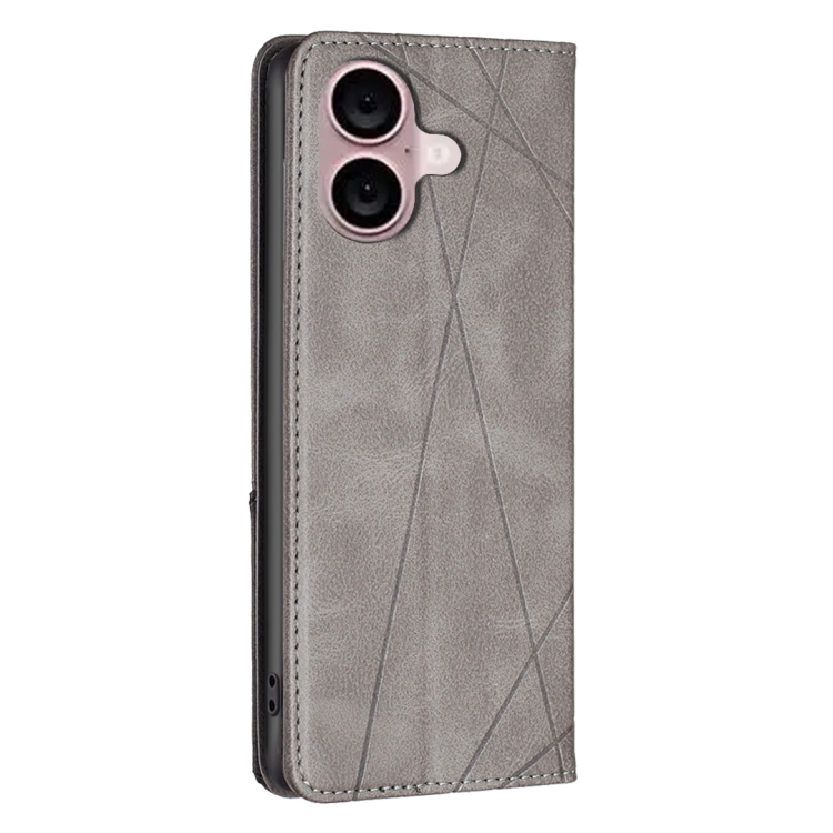 Funda para teléfono iPhone 16 Plus Cuero Magnético Textura Rombo (Gris)