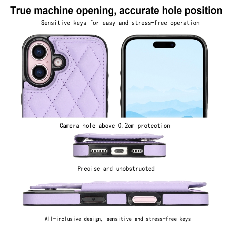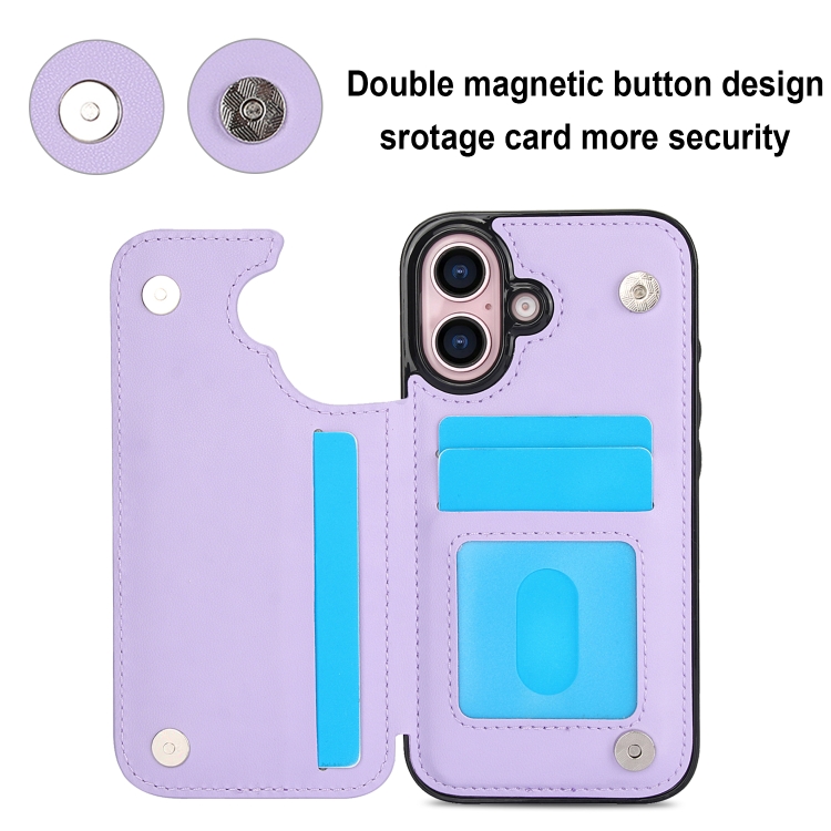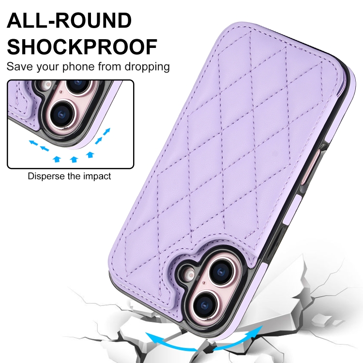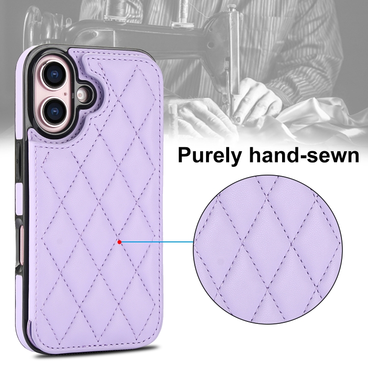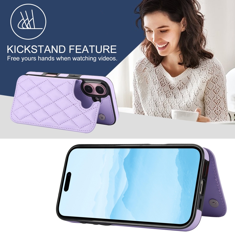 Funda para Teléfono iPhone 16 Plus Cuero Pu Rombal con Doble Hebilla (Púrpura)