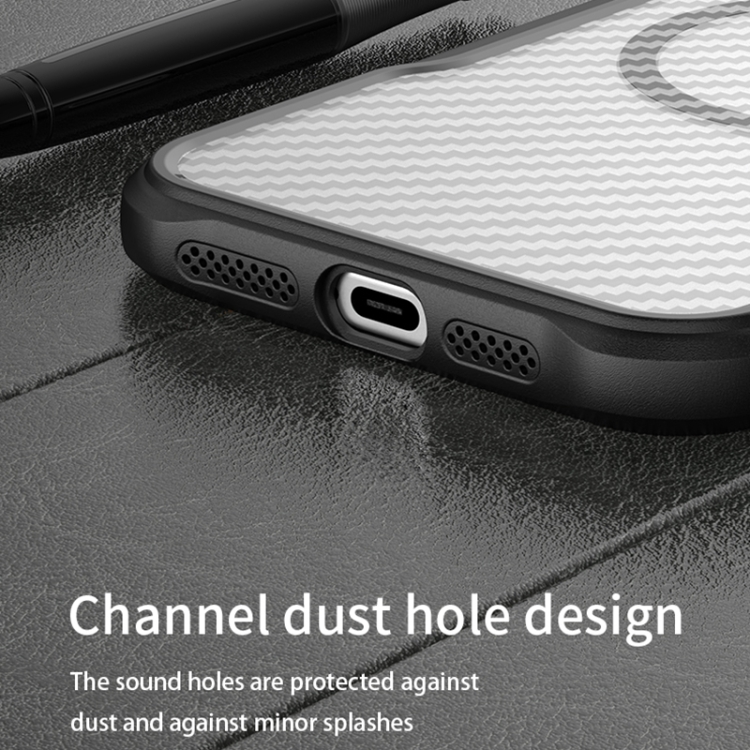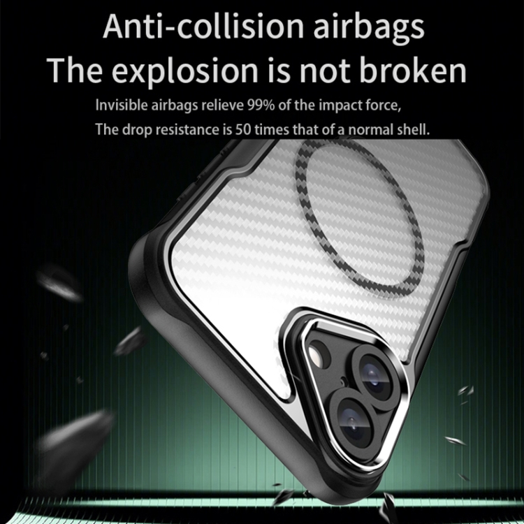 Funda para Teléfono iPhone 16 Plus Translúcida Magsafe con Textura de Fibra de Carbono (Púrpura)