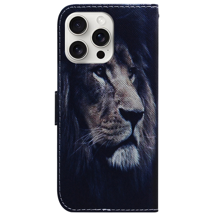Funda para iPhone 16 Pro y 16 Pro Max de Cuero con Tapa y Dibujo Coloreado (León)