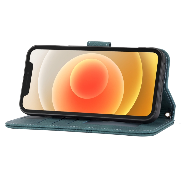 Funda para iPhone 16 Pro Cuero Sensación de Piel Rayas en Relieve (Verde Oscuro)