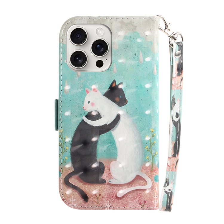 Funda de Teléfono iPhone 16 Pro Cuero con Tapa Horizontal Color 3D (Gato Blanco Negro)