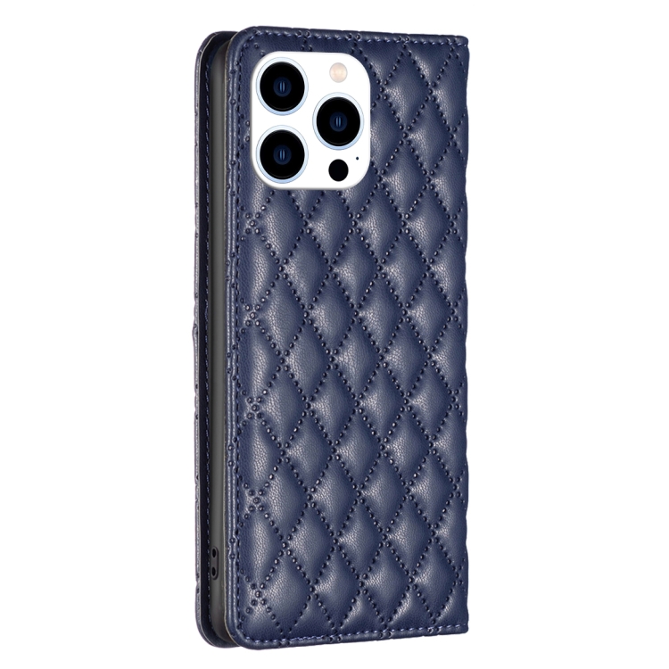 Funda para Teléfono iPhone 16 Pro Max Diamond Lattice con Tapa de Cuero Magnético (Azul)