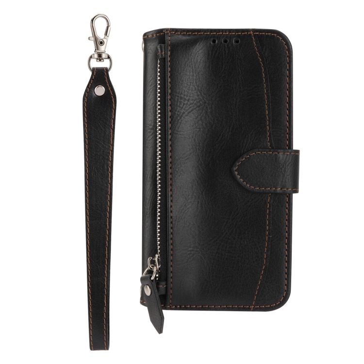 Funda para Teléfono iPhone 16 Pro Max Cuero con Billetera y Cremallera (Negro)