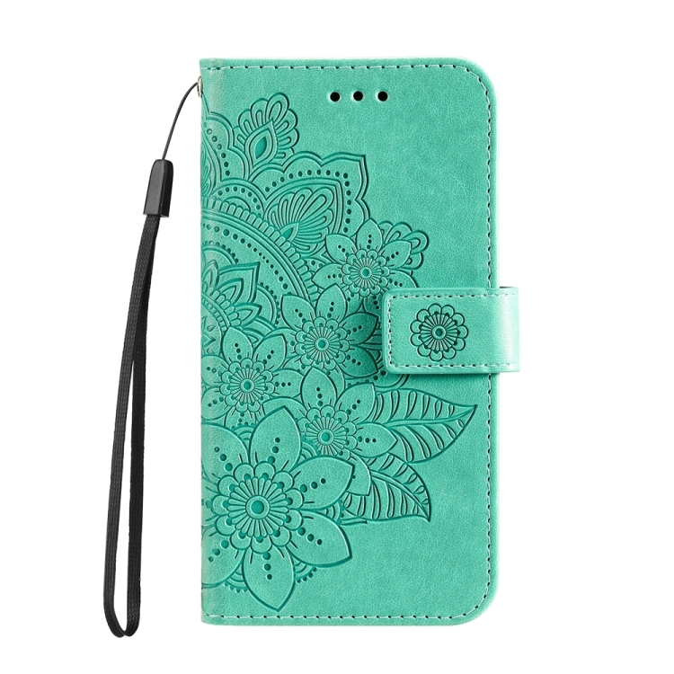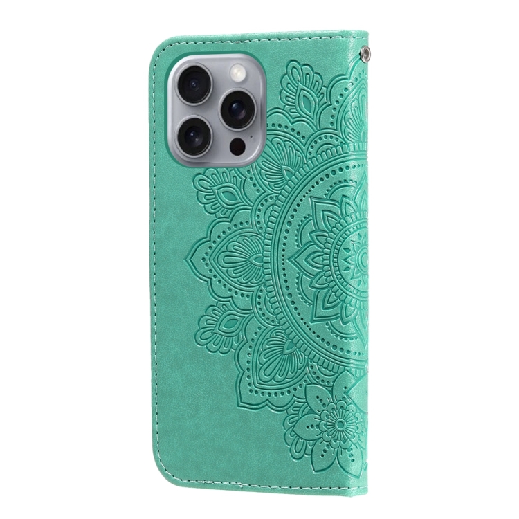 Funda para Teléfono iPhone 16 Pro Max Cuero Estampado Flores 7 Pétalos (Verde)